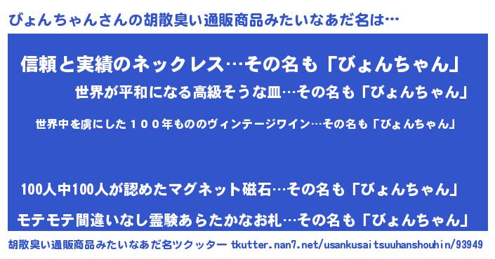 | ヘコむあだ名 | 『びょお』『びょにゅー』『なまこ酢』 |