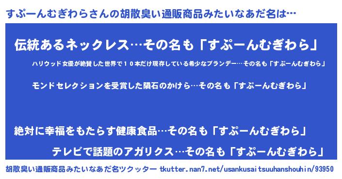| ヘコむあだ名 | 『すぷぷりん』『すぷーんむぎわら(笑)』 |