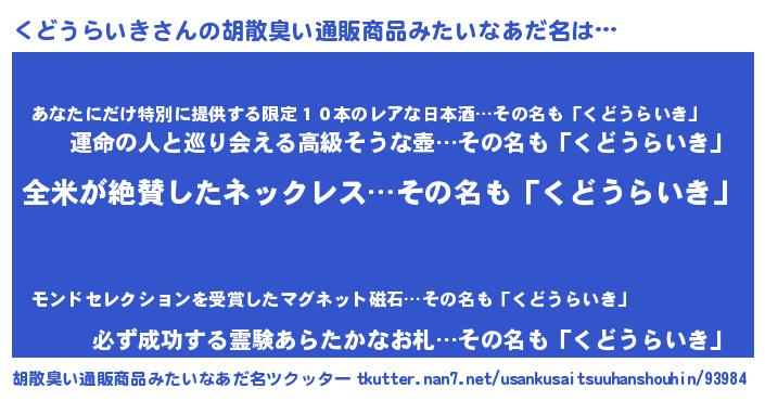 | 意味不明あだ名 | 『とにかく怪しいくどうらいき』 |