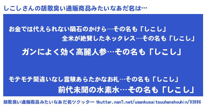 | 意味不明あだ名 | 『自称しこし』『眠気覚ましガムしこし味』 |