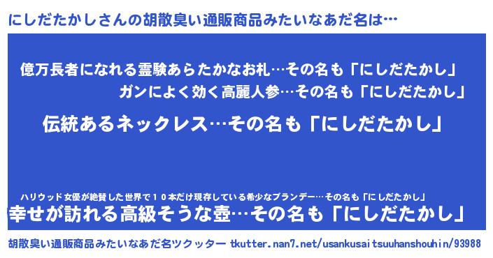 | 意味不明あだ名 | 『とにかく怪しいにしだたかし』 |