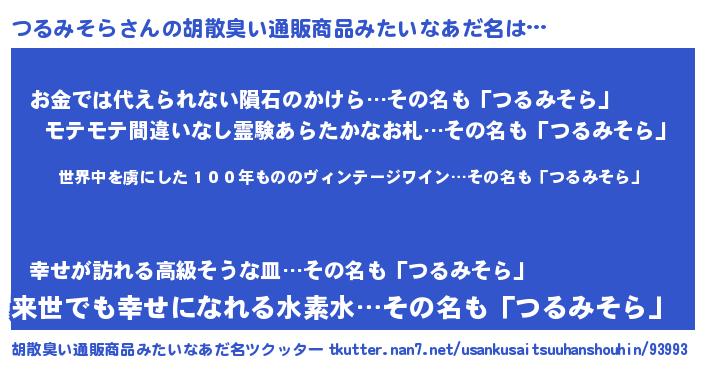 | ヘコむあだ名 | 『つるみそら(笑)』『つるっふぃ~』 |