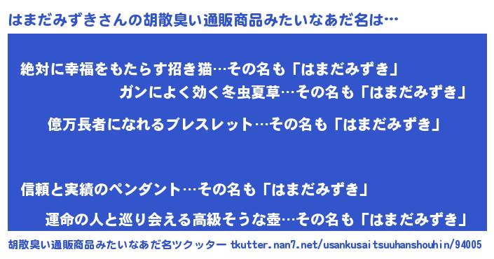 | ヘコむあだ名 | 『はまにー』『はまだみずき(笑)』 |