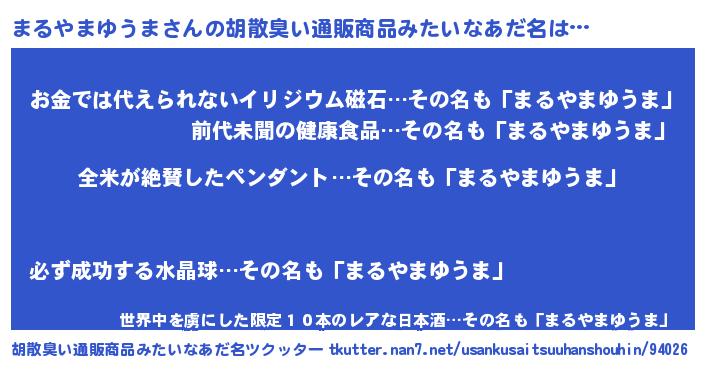 | ヘコむあだ名 | 『まるっちょ』『まるやまゆうま(笑)』 |