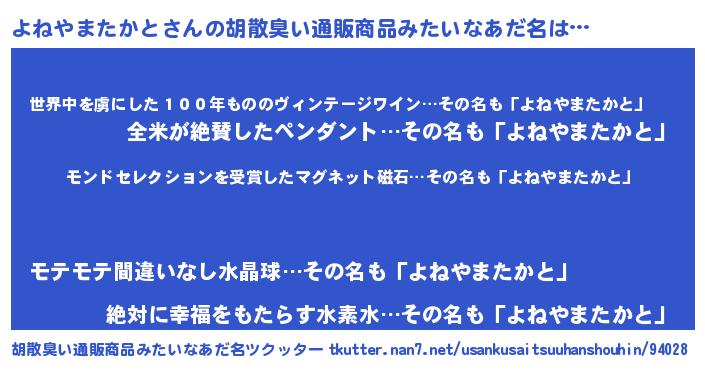 よねやまたかとさんの胡散臭い通販商品みたいなあだ名をツクッター!