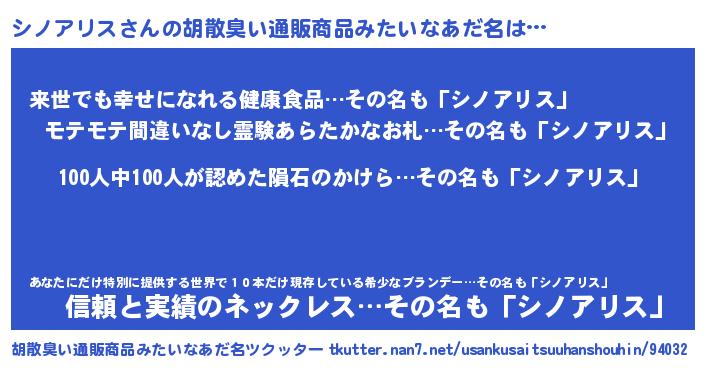 | ヒーロー風カッコイイあだ名 | 『正義の使者シノアリス』『暗黒騎士シノ』 |