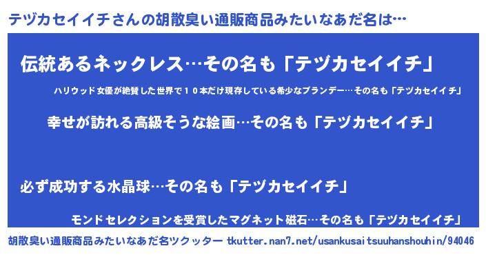 | 男性向けラノベタイトル風あだ名 | 『やはりテヅカセイイチの青春ラブコメはまちがっている 』 |