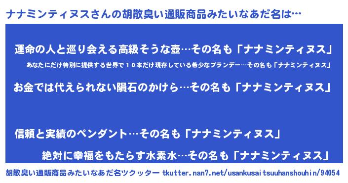| ヒーロー風カッコイイあだ名 | 『愛の使者ナナミンティヌス』 |