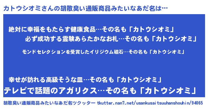 カトウシオミさんの胡散臭い通販商品みたいなあだ名をツクッター!