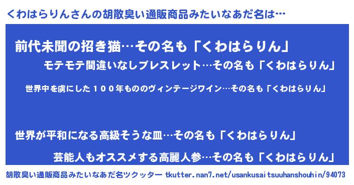 くわはらりんさんの胡散臭い通販商品みたいなあだ名をツクッター!