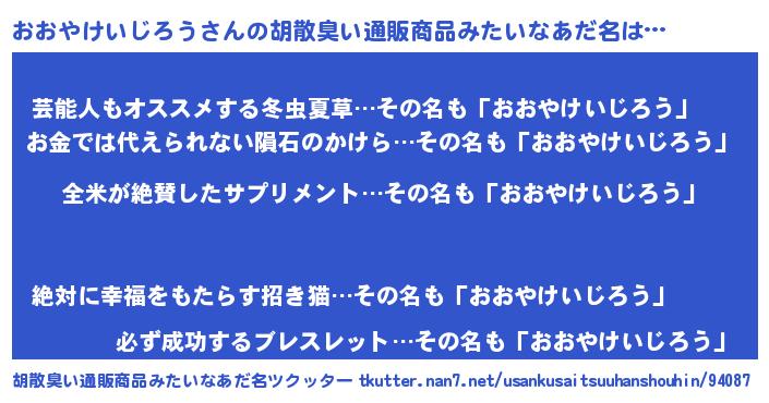 | 意味不明あだ名 | 『とにかく怪しいおおやけいじろう』 |