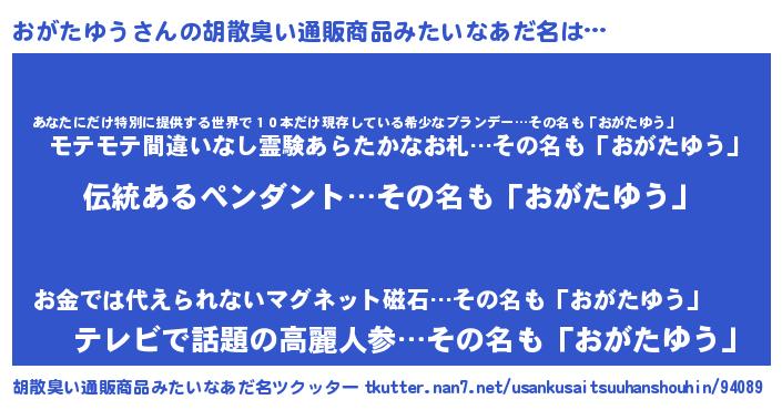 おがたゆうさんの胡散臭い通販商品みたいなあだ名をツクッター!