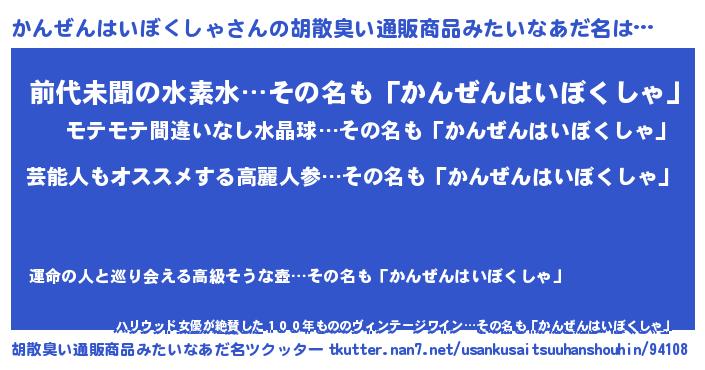 | 意味不明あだ名 | 『自称かんぜんはいぼくしゃ』 |