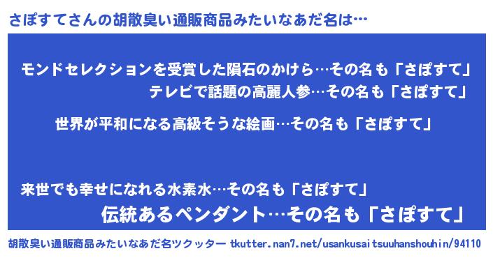 | 意味不明あだ名 | 『さぽすてフォーエバー』『自称さぽすて』 |