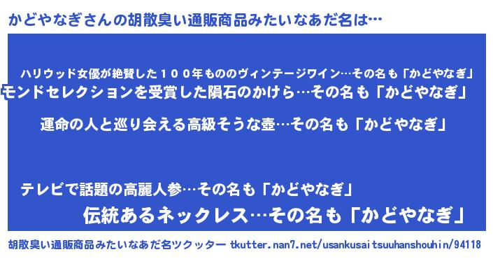 | 意味不明あだ名 | 『かどやなぎフォーエバー』 |
