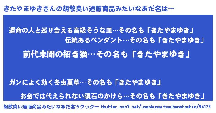 | 意味不明あだ名 | 『永久保存きたやまゆき』 |