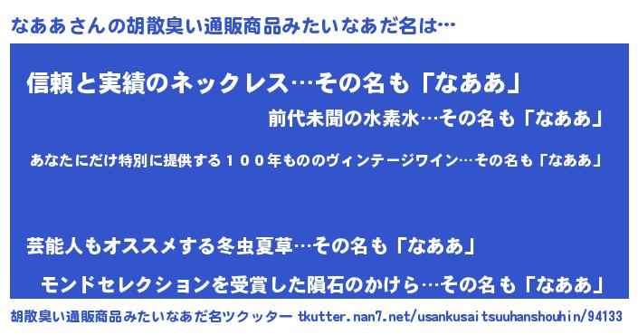 | 意味不明あだ名 | 『住所不定無職なああ(2歳)』『自称なああ』 |