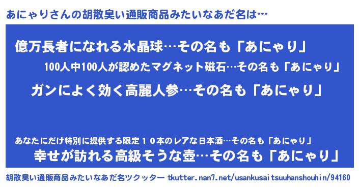 | 肩書あだ名 | 『あにゃり閣下』『あにゃり御曹司』 |