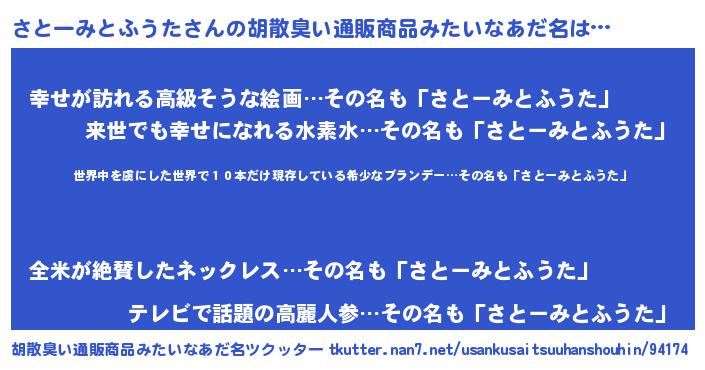 | 欧米人風あだ名 | 『ダレノガレさとーみとふうた』 |