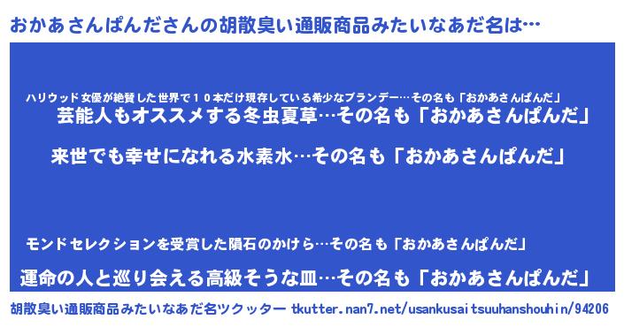 | ヒーロー風カッコイイあだ名 | 『ネオオカアサンパンダ』『仮面オカダー』 |