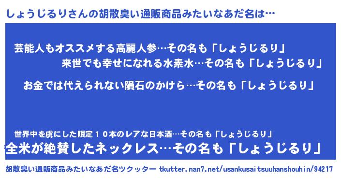 | ヘコむあだ名 | 『しょっちょ』『しょうじるり(震え声)』 |