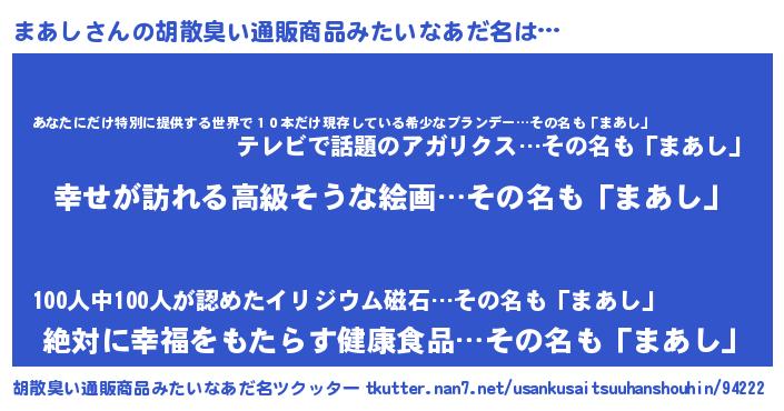 まあしさんの胡散臭い通販商品みたいなあだ名をツクッター!