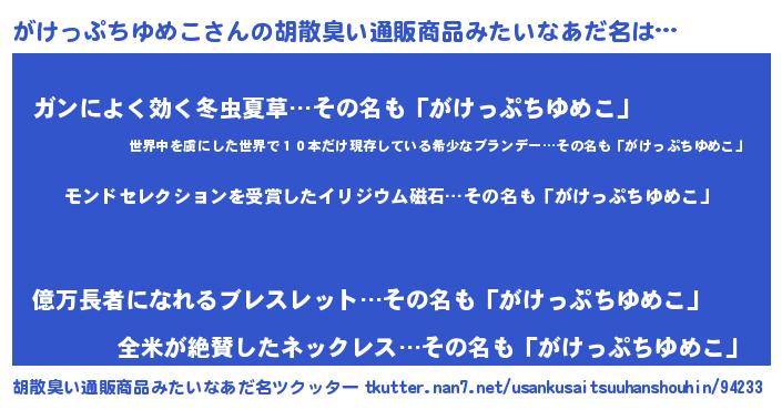 | 伝説のあだ名 | 『救世主となる占い師がけっぷちゆめこ』 |
