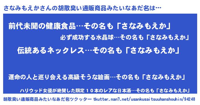 | ヘコむあだ名 | 『さなっ子』『さなみもえか(震え声)』 |