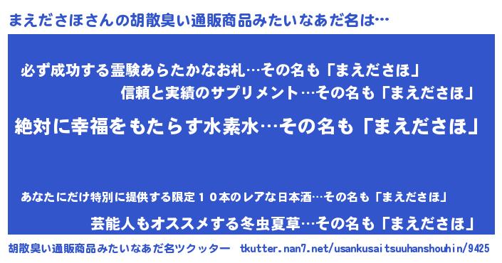 まえださほさんの胡散臭い通販商品みたいなあだ名をツクッター!