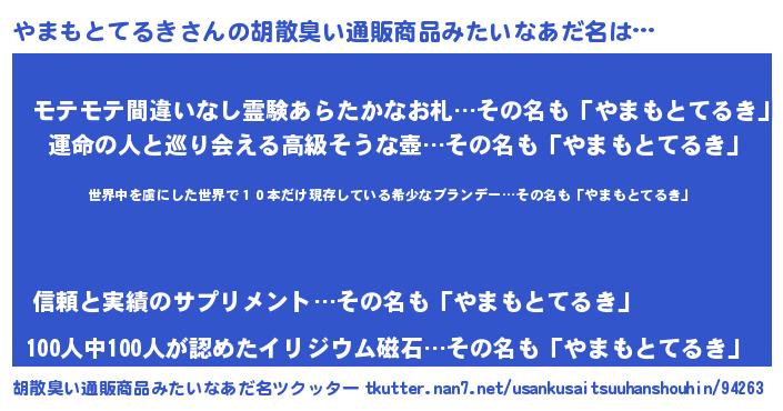 | 意味不明あだ名 | 『住所不定無職やまもとてるき(77歳)』 |