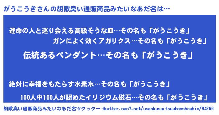 | ポケモン風あだ名 | 『ヒガウコウキ』『ガウコダネ』 |