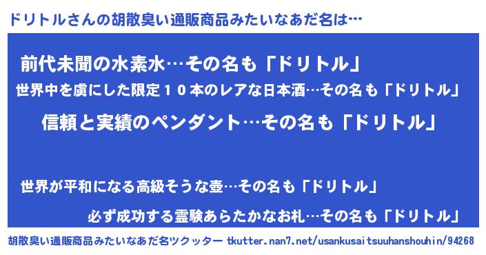 | ヘコむあだ名 | 『ドリっちょ』『ドリトル(震え声)』 |