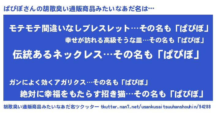 | 意味不明あだ名 | 『とにかく怪しいぱぴぼ』 |