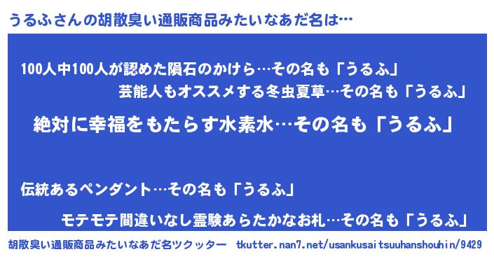 | 意味不明あだ名 | 『永久保存うるふ』『ペロリンうるふ』 |