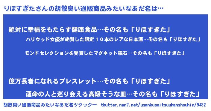 | 欧米人風あだ名 | 『ダニエルりほすぎた』 |