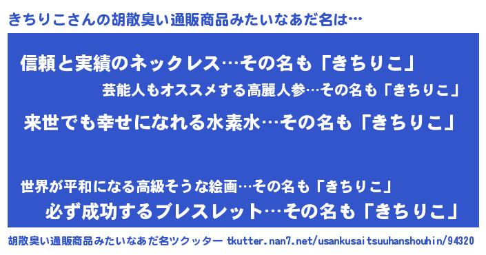 きちりこさんの胡散臭い通販商品みたいなあだ名をツクッター!