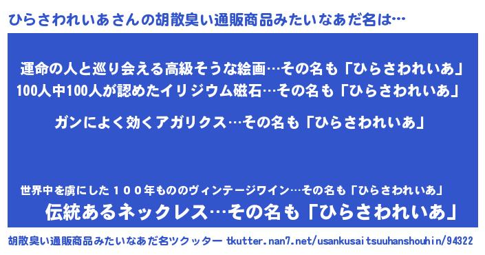 | 意味不明あだ名 | 『自称ひらさわれいあ』 |
