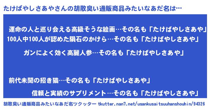 | 意味不明あだ名 | 『自称たけばやしさあや』 |