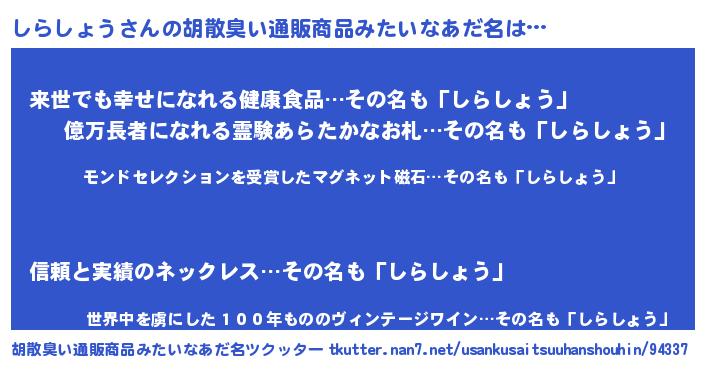 男性向けラノベタイトル風あだ名 | 『ノーゲーム・ノーシラショウ』 |