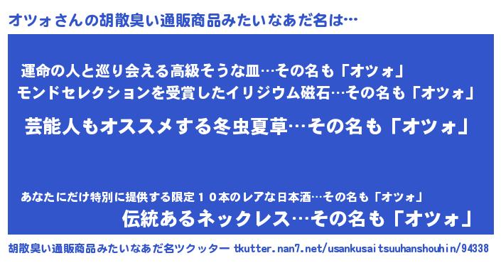 | 意味不明あだ名 | 『自称オツォ』『オツォフォーエバー』 |