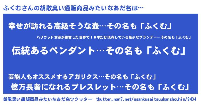 | 意味不明あだ名 | 『とにかく怪しいふくむ』『自称ふくむ』 |