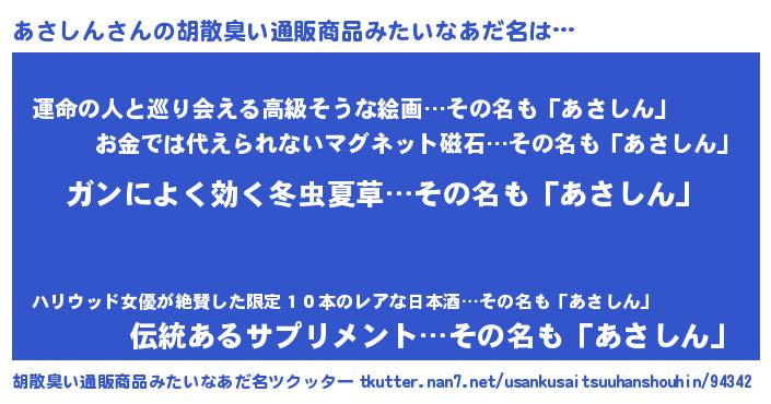 | 意味不明あだ名 | 『めかぶ科あさしん属』『自称あさしん』 |