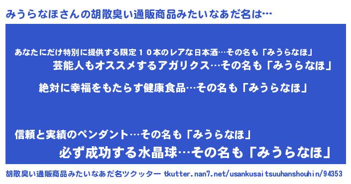 | ヘコむあだ名 | 『みうらなほ(笑)』『みうにゅー』 |