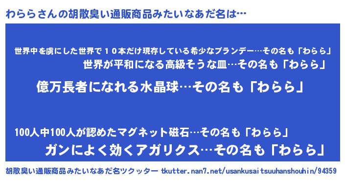 | 恥ずかしいあだ名 | 『プリティーわらら』『ワララデラックス』 |