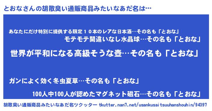 | 欧米人風あだ名 | 『とおなクリステル』『ダレノガレとおな』 |
