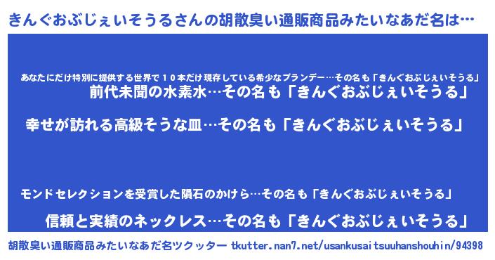 | 意味不明あだ名 | 『きんぐおぶじぇいそうるフォーエバー』 |