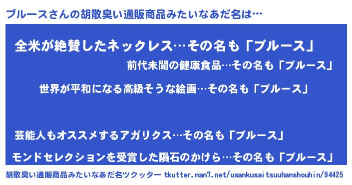 | 男性向けラノベタイトル風あだ名 | 『やはりブルースの青春ラブコメはまちがっている 』 |