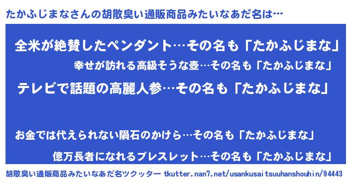 | 意味不明あだ名 | 『自称たかふじまな』 |