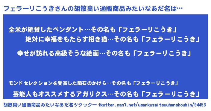 | ヘコむあだ名 | 『つくし』『フェっ子』『フェにゅー』 |