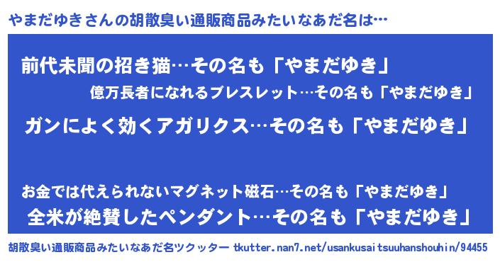 | 意味不明あだ名 | 『自称やまだゆき』『永久保存やまだゆき』 |